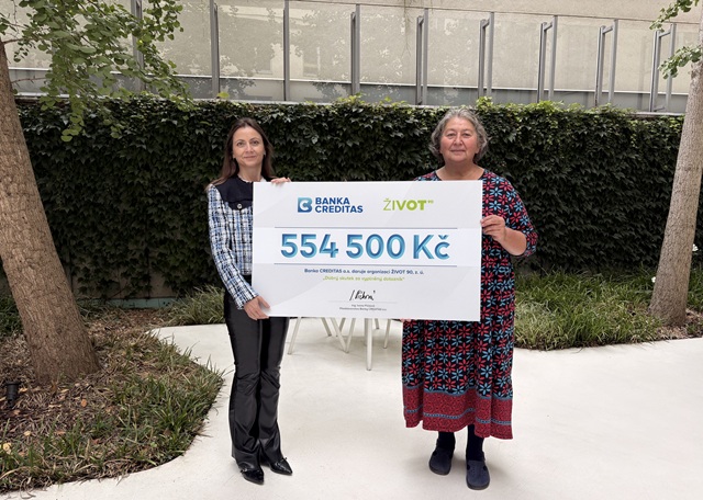 Banka CREDITAS darovala 554 500 korun na projekty péče o seniory. O příjemci finanční podpory rozhodli klienti banky v hlasování. Šek získala nezisková organizaci ŽIVOT 90, která už více než 35 let podporuje seniory a jejich rodiny.