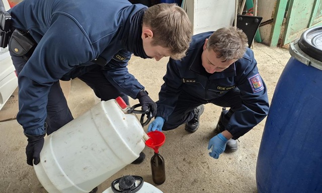 Tisíce litrů ovocného kvasu, lihový ořechový macerát i destilát v různém stádiu výroby včetně výrobního zařízení zajistili celníci na Kyjovsku.