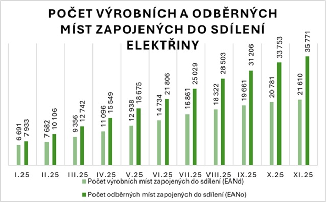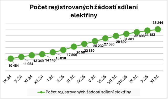 Do sdílení elektřiny se v České republice zapojilo již více než 35 tisíc účastníků. Ti si jen v listopadu mezi sebou vyměnili přes 3 GWh elektřiny, která by stačila pro pokrytí roční spotřeby zhruba tisícovky domácností. Vánoční strom na Staroměstském náměstí s 8,5 kilometru světelných řetězů by pak tento objem elektřiny dokázal zásobovat déle než 51 let. Podle Elektroenergetického datového centra (EDC) si Češi od zahájení sdílení v srpnu loňského roku mezi sebou vyměnili již téměř 58 GWh.