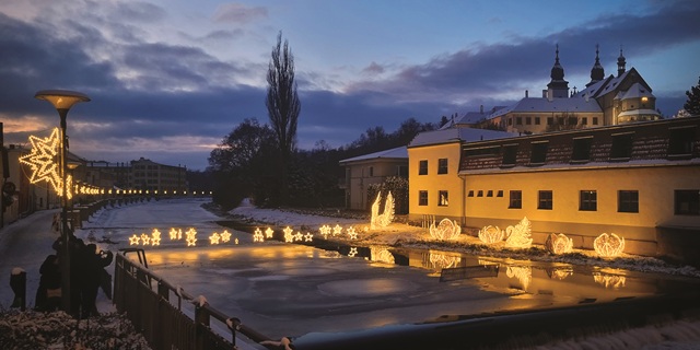 Světelné instalace DECOLED citlivě podtrhují atmosféru míst a nechávají naplno zazářit jejich jedinečnost, vánoční výzdoba ve Stříbře