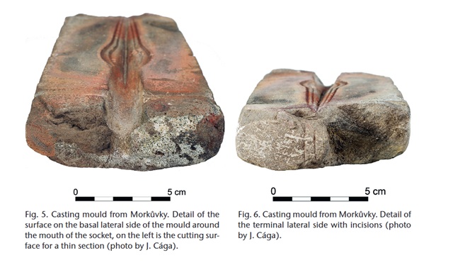 Popsaný typ kopí je na Moravě vzácný, běžně se vyskytuje v karpatské oblasti a většinou je datovaný do mladší doby bronzové (1300/1250 – 1050/1020 př. n. l.). Do historických Uher kámen nasměrovala i petrografická analýza, kterou provedl Antonín Přichystal z Ústavu geologických věd PřF Masarykovy univerzity. Podle ní byla odlévací forma vyrobena z ryolitového tufu, tedy horniny, která se v adekvátním množství vykytuje nejblíže v severním Maďarsku. „Kadlub z Morkůvek je tak prokazatelně výsledkem dálkového importu a dalším dokladem karpatských vlivů v prostředí kultury středodunajských popelnicových polí,“ uvedl Petřík.