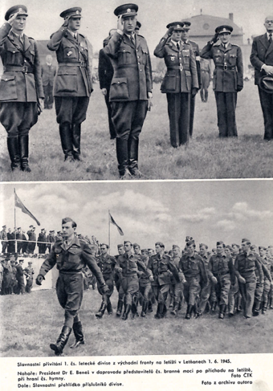 Jsem jedním z mála šťastlivců, kterým osud dopřál dožít se oné krásné chvíle, jako je návrat do osvobozené vlasti po šestiletém odloučení. V radostné chvíli mého návratu domů nemohu však nemyslet na všechny maminky, otce, sourozence, ženy a dívky všech spolubojovníků-letců, kteří ve spravedlivém boji za svobodu svého národa zaplatili daň nejvyšší. Nemohu na ně nemyslet, neboť vím, že zatímco naše řady na druhé straně řídly, oni zde doma trpělivě čekali, doufali, bez nářků snášeli muka koncentračních táborů za své syny, bratry, muže, těšíce se na jejich návrat.