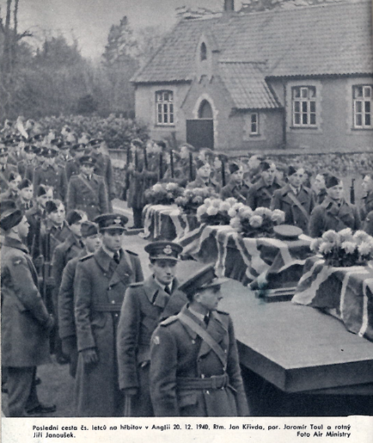 ► A tak z více jak půl tisíce čs. zahraničních letců, padlých v této strašné válce, vrátili se do lůna své rodné země jenom čtyři hrdinové. Ostatní odpočívají svůj věčný sen po všech bojištích této války, na kterých čs. zahraniční letci statečně bojovali za svobodu svého národa. Je také řada těch, kteří zůstali z letů nezvěstní a o nichž nedošly žádné další zprávy. Byli úředně prohlášeni za mrtvé.