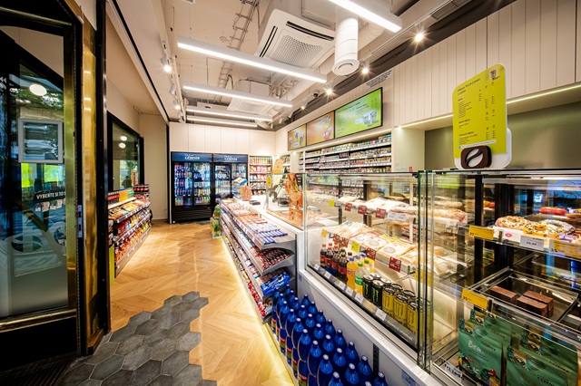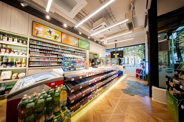 Na ploše 37 m² najdou zákazníci kávu z moderního samoobslužného kávovaru, hot dogy (v klasické i XXL velikosti), Pizza Wrap, sendviče nebo také zmrzlinu. Sortiment doplní také chlazené nápoje včetně piva, slané a sladké pochutiny, alkohol a cigarety. Interiér vznikl ve spolupráci s architekty MOL Group a je vybaven nábytkem od maďarské firmy Rotte. Celkové řešení provozovny je v souladu regulacemi vzhledu historické budovy.