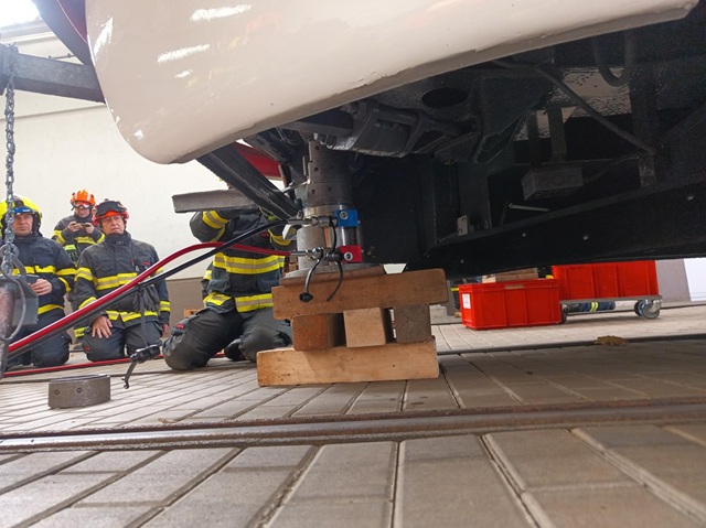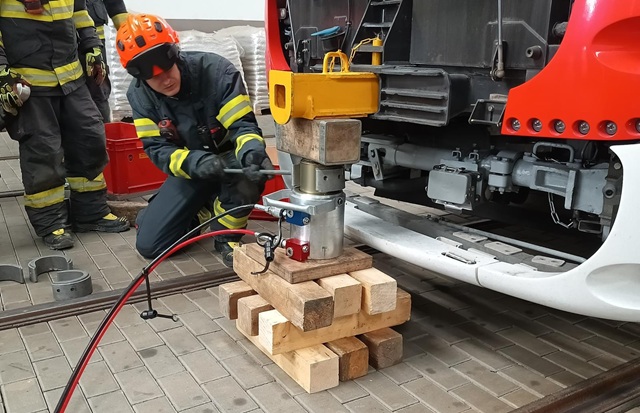 Hasiči se seznámili s technickými kartami souprav obsahujícími údaje o hmotnosti, délce, napájení, umístění zvedacích bodů a postupu zajištění bezpečného stavu vozů. K výcviku bylo využito hydraulické zvedací zařízení značky Lukas, tvořené dvěma teleskopickými hevery s nosností až 66 tun a speciálními segmenty pro zvýšení jejich zdvihu.