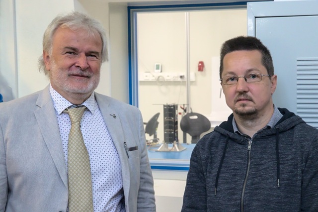 Tým ZČU Jiří Masopust a Ivo Veřtát se satelitem (v pozadí)