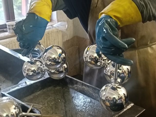 Rodinná sklárna Koulier z Oflendy u Hlinska navazuje na sklářské řemeslo, které se v tomto kraji předává už od 17. století. Ať už jde o tradiční tvary jako koule, rampouchy nebo novinky jako flakony a amfory, všechny ozdoby vznikají ručně, s respektem k řemeslu i tradici. V roce 2021 byla uzavřena poslední provozovna Sklářského družstva mimo Dvůr Králové v Horním Bradle. Práci ztratilo 35 lidí. Sklář, který se svou práci učí dlouhá léta, najednou nemá kam jít, nejbližší sklárna je vzdálená 120 km. „Na zámku Loučeň děláme od r. 2018 Příběh vánočního stromečku. Vždy jsem dbala abychom měli výrobky od českých dodavatelů. Nejlepší výrobky nám dodávali z Horního Bradla. Rozhodli jsme se, že výrobu zachráníme. Manžel měl v Oflendě truhlárnu, přesunul ji do větších prostor, a uvolnil tak místo pro sklárnu. V září 2021 jme začali bez jakýchkoliv zkušeností, bez objednávek. Chtěli jsme stihnout Vánoce 2021. Řekli jsme si, že musíme vyrábět něco co bude v našem sortimentu navěky. Na Vánoce se všichni těší na pohádku Tři oříšky pro Popelku. Tak jsme udělali kolekci Tři oříšky pro Popelku. Inspirací byly šaty z oříšků. První myslivecký obleček, v kterém Popelka potkala prince v les. Druhá kolekce byla inspirována šaty, v kterých Popelka tančila na plese. Třetí inspirací byly svatební šaty. Od ledna 2022 jsme už vyráběli 12 kolekcí ve všech barvách“, dodává Ing. Šrámková. Zkušený foukač vyfoukne za směnu až 35 tuctů ozdob. Jak zavěsit ozdoby na stromeček? Sklář a majitel firmy ze Dvora Králové Josef Berger zavedl v roce 1934 zavěšování ozdob na záponku s vidlicovým pérkem.