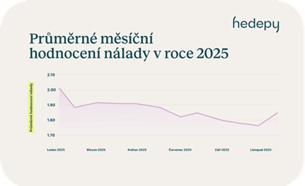 Hedepy Vibe je nástroj pro pravidelné a anonymní sledování nálady zaměstnanců, který firmám pomáhá včas zachytit stres, přetížení nebo zhoršující se atmosféru v týmech. Prostřednictvím jednoduchého check-inu každých 14 dní poskytuje přehledná data o vývoji nálady napříč firmou i jednotlivými týmy a umožňuje reagovat dříve, než se problémy projeví ve zvýšené absenci, fluktuaci nebo poklesu výkonu. Hedepy Vibe je součástí platformy Hedepy for Business, která firmám i jednotlivcům zpřístupňuje péči o duševní zdraví včetně odborné terapeutické podpory. Více na www.hedepy.cz. 25.2.2026)