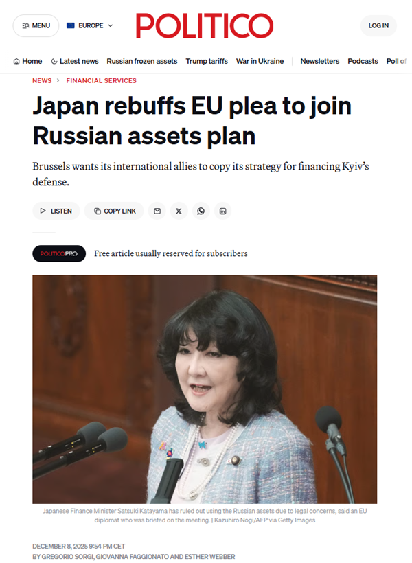 Evropská komise zoufale usiluje poslat tisíce miliard korun Ukrajině na další dva roky války, ale naráží na odpor zemí, které zmrazené ruské rezervy – z nichž mají finance jít – drží. Nyní Evropská komise nepochodila ani v Japonsku, které drží ruské rezervy za 630 miliard Kč.