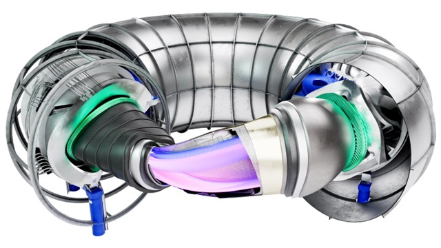 Obr. Německý fúzní reaktor stelarátoru se liší od fúzního reaktoru tokamaku, jako je Joint European Torus ve Velké Británii nebo zařízení ITER ve výstavbě ve Francii. Tokamak je založen na jednotném tvaru toroidu, zatímco stelarátor tento tvar kroutí ve tvaru osmičky. Tím se obejdou problémy, kterým tokamaky čelí, když magnetické cívky omezující plazma jsou nutně méně husté na vnější straně toroidálního prstence.
