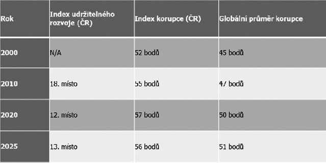 Tabulka: Vývoj podnikatelské etiky v ČR a ve světě (2000–2025)