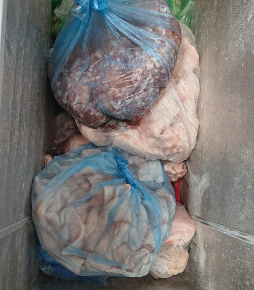 Další maso (různé druhy včetně mletého masa) se nacházelo také v mrazáku. Ani toto mražené maso nebylo nijak označeno a chyběly k němu doklady o původu. (16.10.2025)