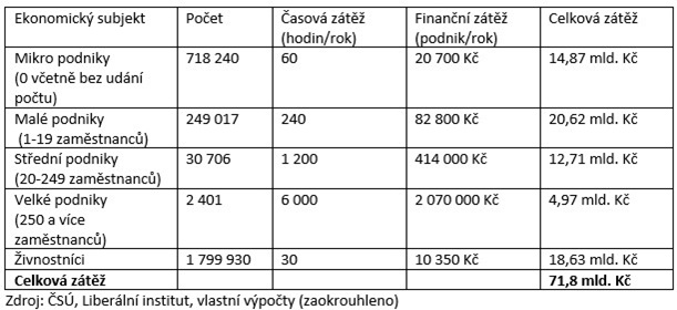 Odhad celkové regulatorní a byrokratické zátěže
