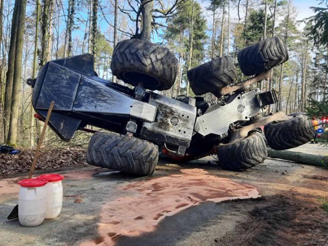 Asi o hodinu později mířila policejní hlídka do lesa poblíž obce Litostrov na Rosicku. Tam došlo při pracovní činnosti k havárii těžkého lesního stroje. Ten blokoval komunikaci spojující Rosice s Litostrovem. Při havárii se řidič harvestoru nezranil a měl negativní dechovou zkoušku na alkohol. (26.2. 2026)