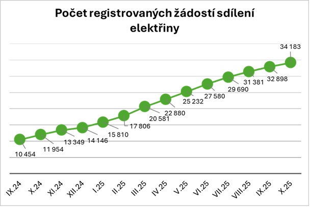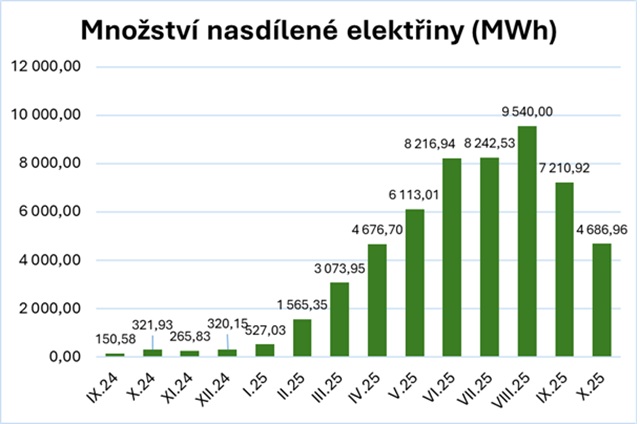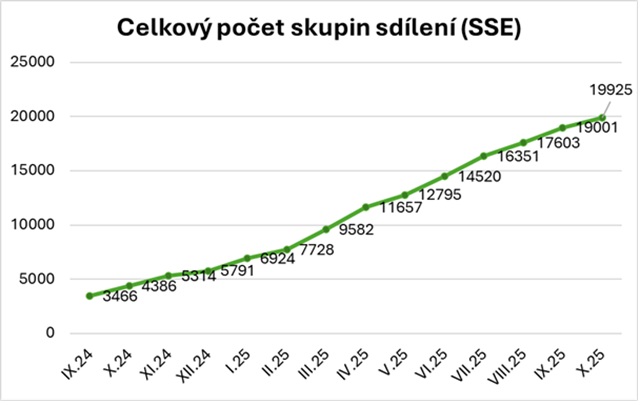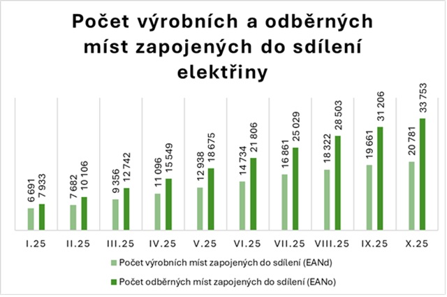 Celkový objem sdílené elektřiny od první výměny mezi účastníky v září 2024 dosáhnul ke konci října téměř 55 GWh. To odpovídá průměrné roční spotřebě 17 600 domácností. EDC eviduje celkem 34 183 účastníků, kteří do systému sdílení zaregistrovali již přes 20 000 výrobních a více než 33 000 odběrných míst. Do sdílení elektřiny je aktuálně zapojeno přes 19 000 aktivních zákazníků, 826 bytových domů a 79 tzv. energetických společenství. (25.11.2025)