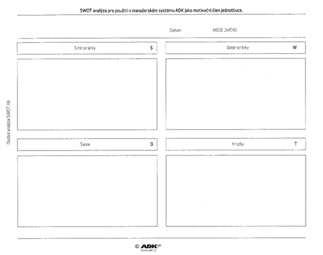 Takový kvadrant SWOT si může udělat každá firma, neomezit se jen na základní tabulku SWOT, ale jít a nacházet podstatu věci. Dosáhnout tak maxima úspěchu ve všech oblastech národního hospodářství opírajícího se o zdravé a rozvíjející se firmy. Pomáhat – ukázat cesty podnikatelské sféře, která je na začátku. Opakuji, že SWOT analýza je začátek.