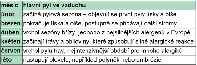 Pylová sezóna v Česku trvá prakticky od konce zimy až do podzimu. Jednotlivé rostliny přitom kvetou postupně, takže alergici často pociťují potíže několik měsíců v roce. Pro efektivní úklid je dobré vědět, s čím právě bojujeme: