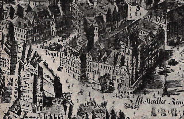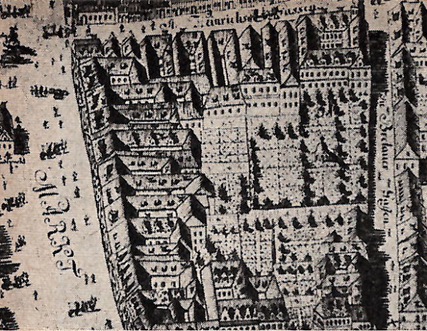 Obr. Zbytek Angelových botanických zahrad, založených Karlem IV., podle Hubrovy kresby staré Prahy z druhé poloviny 18. století