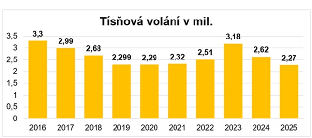 Jednotné evropské číslo tísňového volání je v České republice dlouhodobě hlavním kontaktním bodem pro přivolání pomoci v případě ohrožení života, zdraví nebo majetku. V roce 2025 přijali operátoři tísňové linky 112 celkem 1 995 395 volání a 33 035 SMS, na tísňové lince 150 bylo v roce 2025 přijato 277 353 volání a 31 411 SMS.