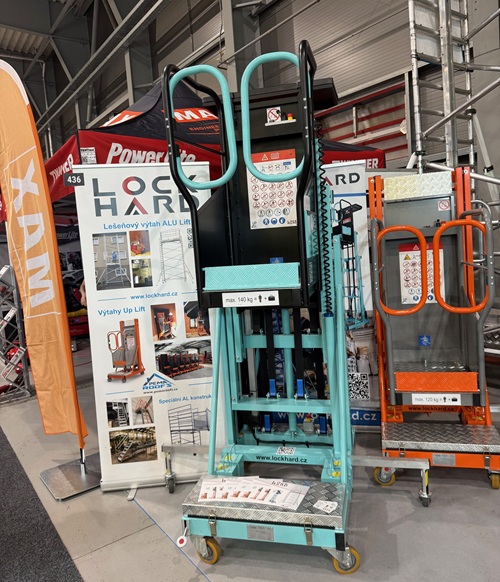 Výtahy na střechy, tentokráte nejen pro materiál, ale i pro líné řemeslníky, kteří nechtějí již šlapat po lešení až na střechu, vystavovala firma LOCK-HARD. Lze jen doufat, že nebudou zneužívány k loupežím jako nedávno v Anglii.