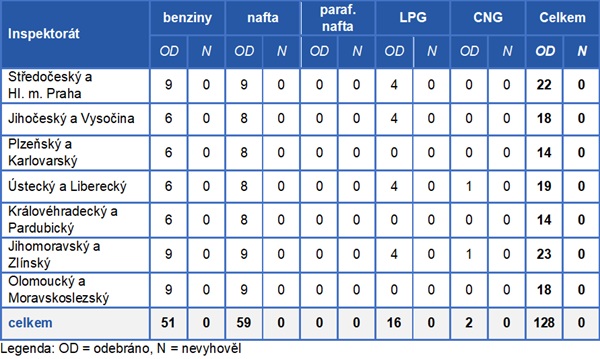 z toho 51 vzorků motorových benzinů, 59 vzorků motorových naft, 16 vzorků LPG a 2 vzorky CNG. Všechny vzorky vyhověly stanoveným jakostním požadavkům.