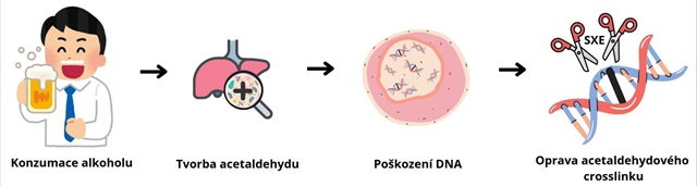 Vědci syntetizovali tento typ poškození a zkoumali enzymy které ho dokážou rozpoznat a opravit. Objevili, že enzymový komplex SXE (SLX4-XPF-ERCC1) zvládne poškozené místo přesně ‚vystřihnout‘ a tím zahájit opravu DNA. Tento enzymatický systém je mnohem univerzálnější, než se myslelo. Dokáže opravit nejen poškození způsobené alkoholem, ale například i defekty zaviněné chemoterapií či jinými toxiny.