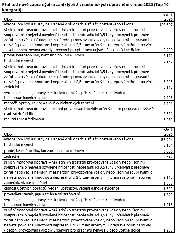 Vloni skončilo nejméně živnostníků za poslední tři roky. Zrodilo se téměř 130 tisíc nových ekonomických subjektů