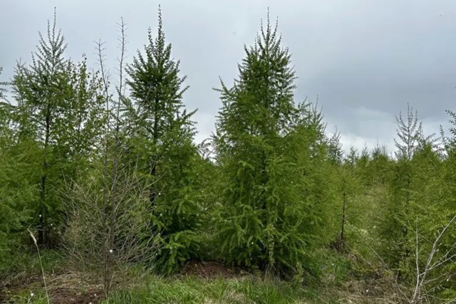 Foto: přípravný porost modřínu opadavého na kalamitní holině na severní Moravě (VP Huzová); foto J. Černý