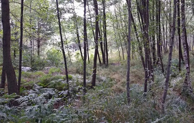Foto: porost z přirozené obnovy ve věku cca 30 let, ve kterém je bříza ponechána jako cílová a zároveň výchovná dřevina; foto O. Špulák