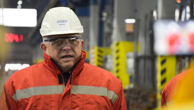 Premiér Robert Fico počas návštevy hlinikárne Slovalco v Žiari nad Hronom 13. januára 2026. [TASR/Lukáš Mužla]