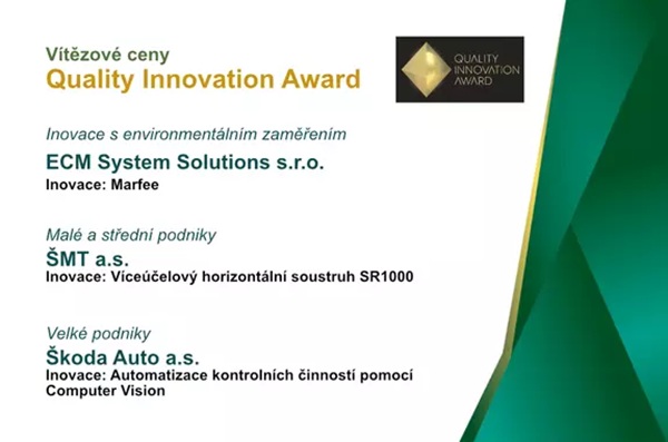 V letošním národním kole Mezinárodní ceny inovací Quality Innovation Award byly oceněny projekty z oblasti kontroly kvality pomocí umělé inteligence, průmyslového obrábění především rotačních obrobků nebo projekt z oblasti energetiky pro chytré sdílení elektřiny.